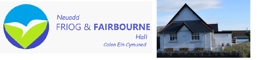 Friog and Fairbourne Village Hall is a registered charity managed by a committee of trustees. The Village Hall is a key facility for the community of Friog and Fairbourne and is owned by the community.